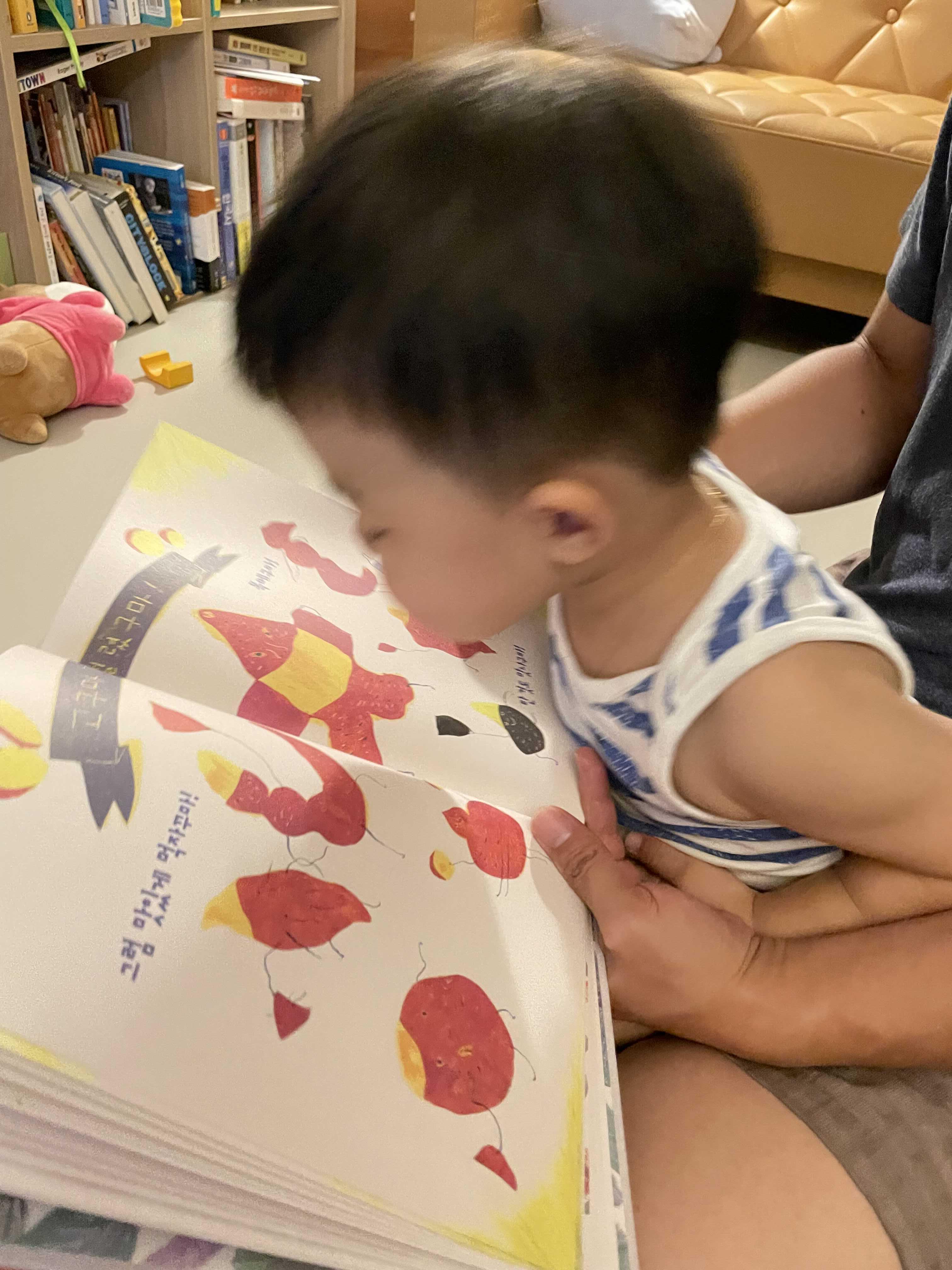 오늘 자기 전 준이가 픽한 책은 "고구마구마"